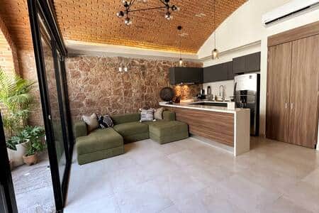 Nuevo en Airbnb, nuestro departamento de 2 recámaras y 2 baños en uno de los edificios más históricos de Puerto Vallarta. Está ubicado en el Centro Histórico (casco antiguo), a una cuadra del mar y del Malecón (paseo junto al mar), y rodeado de restaurantes, bares y galerías de arte. Las playas y la Zona Romántica están a 5 minutos a pie. El apartamento da a dos calles más tranquilas, pero ocasionalmente se oye el sonido que cabría esperar de una ubicación en el centro de la ciudad. Con más de un siglo de antigüedad, el edificio sirvió originalmente como ayuntamiento, luego como oficina central de una aerolínea local y, más tarde, como banco. Ahora convertido en apartamentos, conserva los techos abovedados de ladrillo originales, creando un espacio aireado y relajante. El salón combina un salón con un gran sofá, una cocina con electrodomésticos nuevos y acceso a una terraza privada. Hay dos dormitorios de tamaño similar, ambos con camas de matrimonio y armarios empotrados. Cada dormitorio tiene un cuarto de baño privado y el dormitorio uno tiene dos lavabos. Hay un pasillo con mucho espacio para guardar las maletas. La sala de estar y los dormitorios tienen aire acondicionado independiente. El departamento está en el primer piso en la esquina del edificio, en dos calles más tranquilas. No está frente a bares o discotecas ruidosos, pero se pueden escuchar las campanadas de la catedral y los sonidos ocasionales de la gente que pasa, como es de esperar en una ubicación en el centro de la ciudad. Tiene luz natural en todas partes, con persianas eléctricas para brindar privacidad y oscuridad a los dormitorios. Este es un apartamento privado para uso exclusivo. El acceso se realiza desde la entrada trasera del edificio. Nos reuniremos con usted para el check-in y, dado que esta es la primera vez que se alquila esta propiedad, le explicaremos rápidamente cómo funciona todo. Vivimos en PV, por lo que puede contactarnos desde la mañana hasta media noche cualquier día y, por lo general, podremos responder dentro de una o dos horas (si no antes). El departamento está en uno de los edificios más históricos de Puerto Vallarta y ubicado en el corazón del casco antiguo. Este distrito es animado y encantador, con numerosas galerías de arte y muchos de los mejores restaurantes. Cerca se encuentra la catedral, el río y el famoso paseo marítimo Malecón que conduce a una serie de playas. Este es un listado nuevo y la primera vez que se alquila esta propiedad. Creemos que tenemos todo lo importante en su lugar, pero si hay algo que nos hemos perdido, háganoslo saber y haremos todo lo posible para ayudarlo. Si desea limpieza durante su estadía, solicítelo al hacer la reserva y podemos organizarlo por una tarifa adicional.